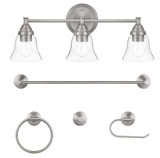 Marsden 23.5 in. 3-Light Brushed Nickel Transitional Vanity with Bathroom Hardware Kit