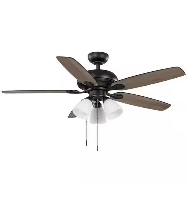 Rockport II 52 in. Indoor Matte Black LED Ceiling Fan with Light kit, Downrod and Reversible Blades Included