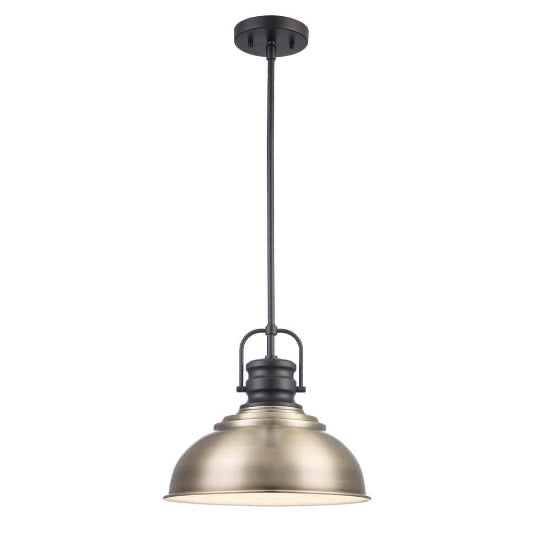 Shelston 13 in. 1-Light Antique Gold and Black Farmhouse Pendant Light Fixture with Metal Shade